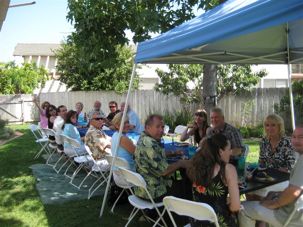 2nd Stop - Buzz "I'll BBQ anything" Rehman The Rehman's were flinging so much meat at us, we finally had put our hands up and say no more. Interestingly, about the time we were leaving, Fran realized that they forgot to put out the homemade potato salad. Looks like Buzz and Fran will be enjoying a 40 person serving potato salad for a few days! We filled the Rehman's driveway with Panteras and there were a few spilling ont the street too. Their neghbor, Luis Castillo (San Diego Chargers football player) had given permission for us to use his driveway too if we needed it. Unfortunately for all us Charger fans, Luis was busy at practice and could not drop in on the party. The view off the Rehman backyard is inspiring Almost too inspiring! Phil tries to coax George off the wall, Everyone was all smiles. Alan Foster, Rick Powell and Bill Hohnhorst. |